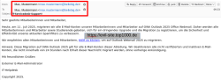 Die Abbildung wurde mit Outlook erzeugt. Die rot umrandeten Elemente weisen auf die Fälschungen hin.